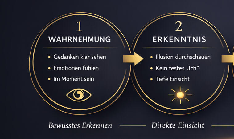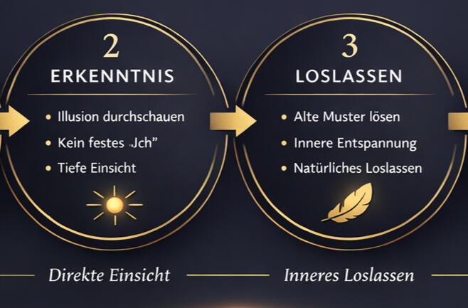 Sie ist ein Strukturbruch.Wenn erkannt wird, dass Gedanken erscheinen, aber kein eigenständiges „Ich“ tragen, verliert Identifikation ihre Grundlage.Transformation geschieht durch Einsicht, nicht durch Selbstverbesserung.